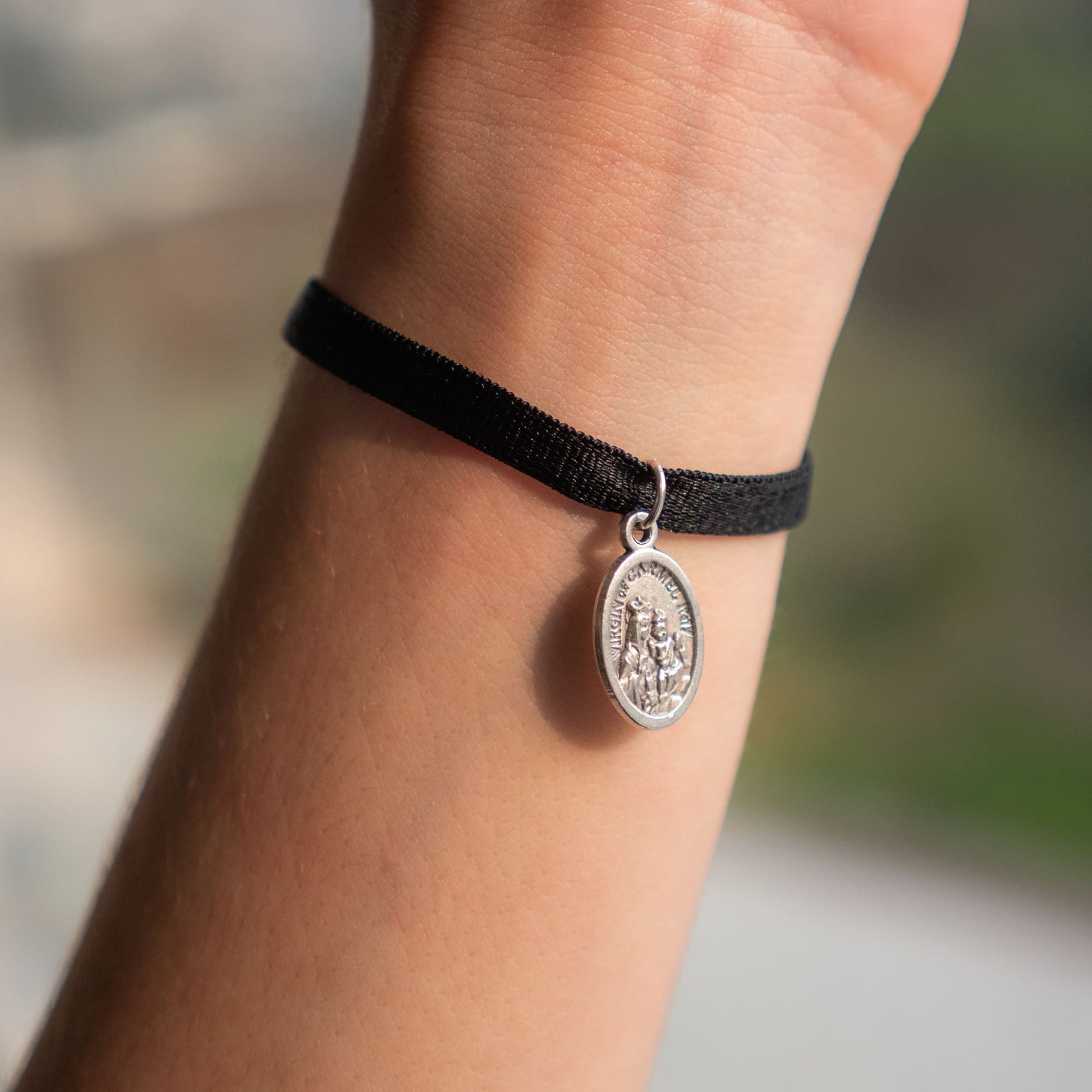 Lleva el Escapulario de la Virgen del Carmen con actitud con esta minimalista pulsera elástica.